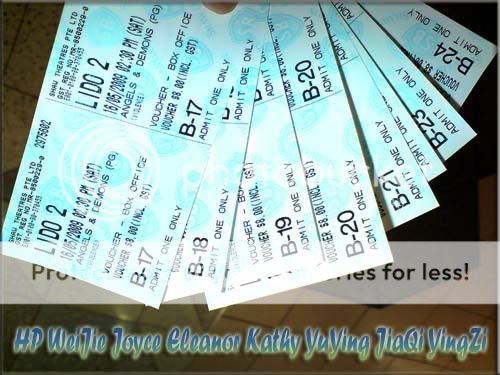 Afternoon around 1pm, met weijie,joyce,eleanor,kathy and yuying at orchard mrt control station. We went over to shaw Lido to buy our Angels and Demons movie tickets first, after den..we proceed on to our lunch at KFC…Well, my picture gonna do the talking again! *see below*