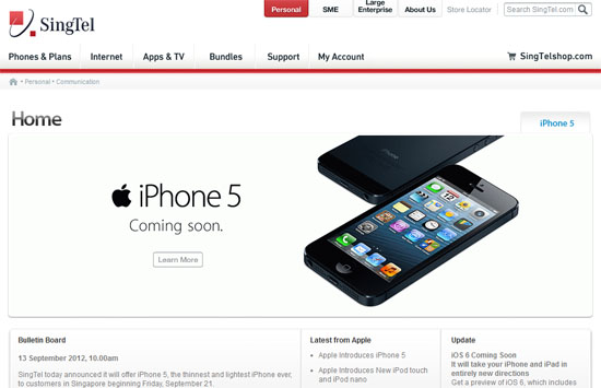 Singapore 13 September 2012 – SingTel today announced it will offer iPhone 5, the thinnest and lightest iPhone ever, to customers in Singapore beginning Friday, September 21. For more information, do visit Singtel official iphone website: http://info.singtel.com/personal/communication/apple/iphone5